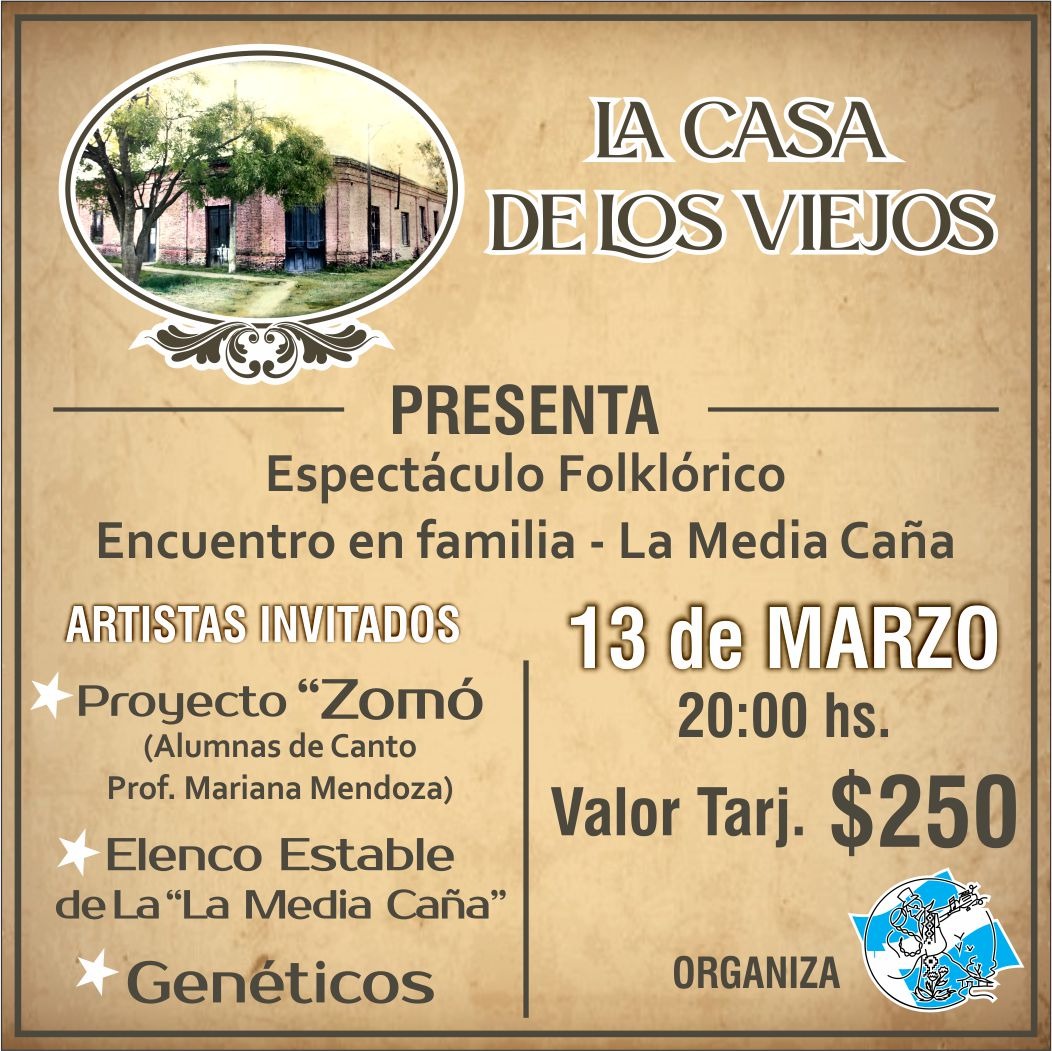 Se trata del espectáculo folclórico en “La Casa de los viejos”, en Libertad y Gato y Mancha, dado que se concretará en el patio de la casa de la propia directora de la Academia, Alejandra Etcheverry, el sábado 13 de Marzo desde las 20 horas.